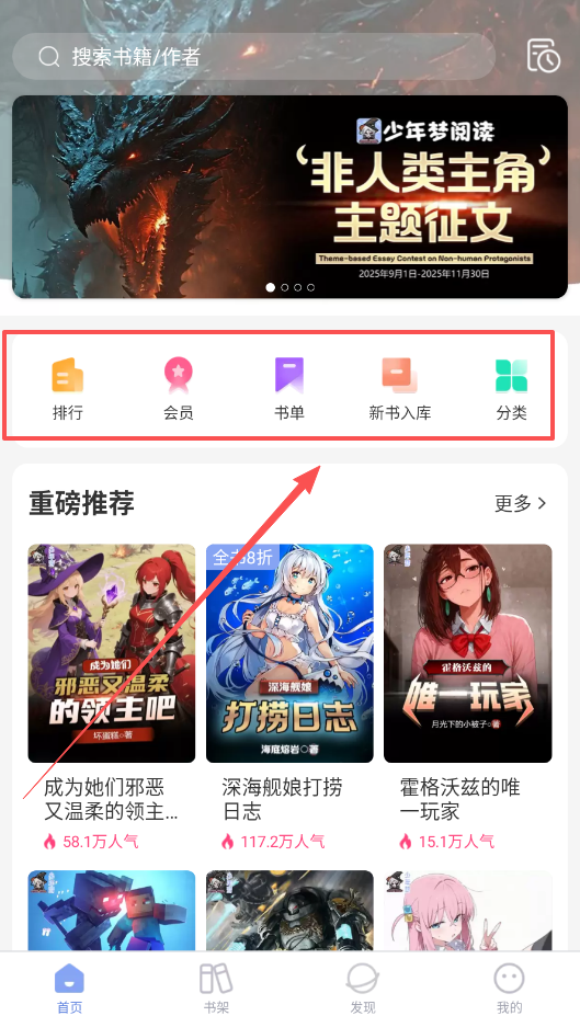 2、在主界面中,您可以瀏覽熱門推薦及排行榜,發(fā)現(xiàn)最新和最受歡迎的小說,輕松找到您感興趣的系列。