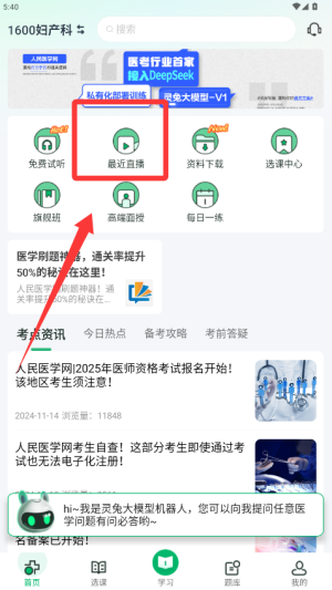 1、打開軟件后選擇醫(yī)學分類,比如內(nèi)科或外科,瀏覽直播課程表并預約感興趣的教學內(nèi)容。